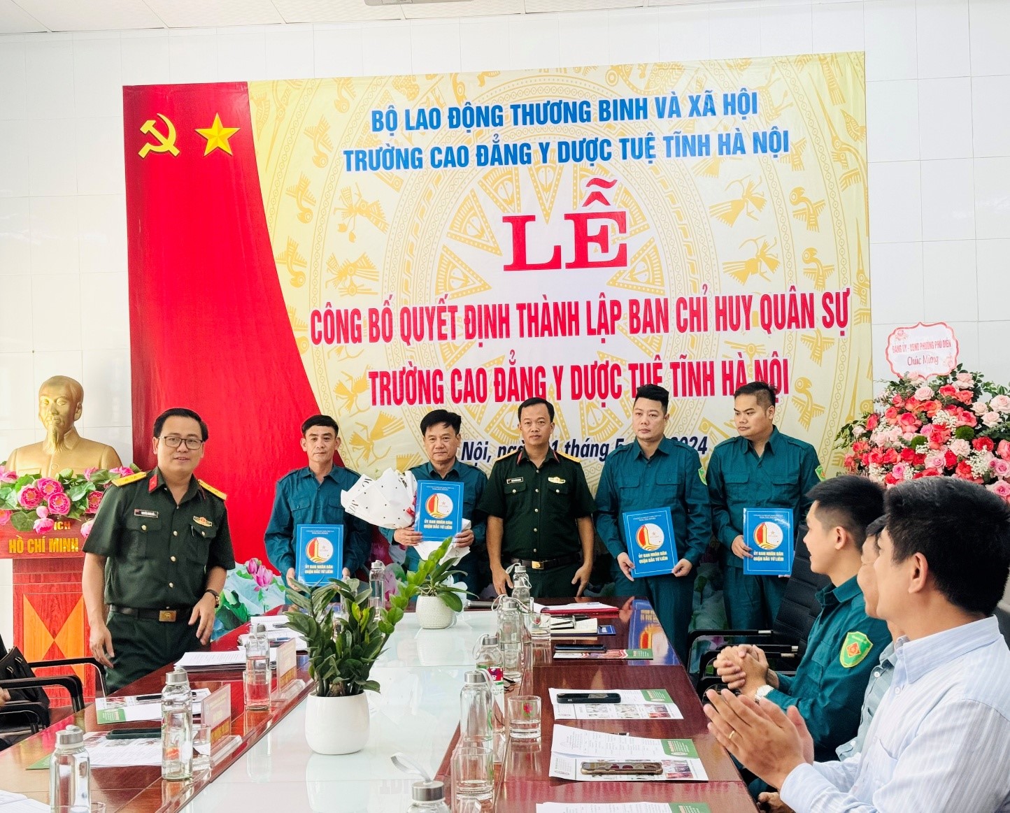 Sáng ngày 21/5/2024, tại Trường Cao đẳng Y dược Tuệ Tĩnh Hà Nội đã long trọng tổ chức Lễ công bố, trao quyết định thành lập Ban chỉ huy quân sự Trường Cao đẳng Y dược Tuệ Tĩnh Hà Nội và các quyết định cá nhân kèm theo.