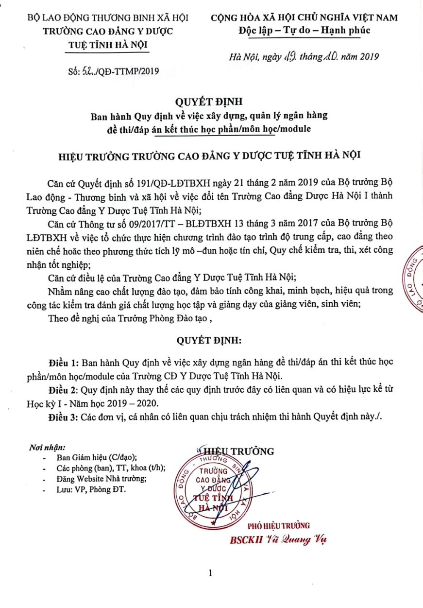 Quyết định về việc chấm dứt tuyển sinh và đào tạo tại 10 địa điểm ngoài Trường Cao đẳng Y Dược Tuệ Tĩnh Hà Nội