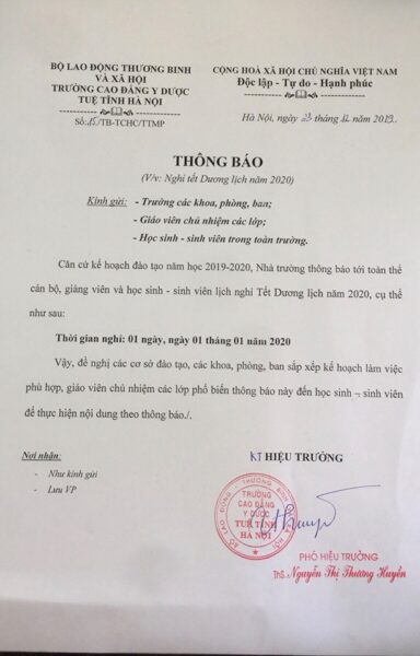 Chào mừng bạn đến với Cổng thông tin điện tử chính thức của Trường Cao đẳng Y Dược Tuệ Tĩnh Hà Nội ! Với vai trò như một trang tin nội bộ để phản ánh những thông tin, sự kiện nổi bật diễn ra trong hoạt động thường nhật của Trường, nên nhiều nội dung, hình ảnh, đề mục chưa đáp ứng được sự kỳ vọng của Quý độc giả, Quý Thầy cô và các bạn HSSV. Đồng thời, hiện tại Trang tin đang gặp phải một số vấn đề kỹ thuật, nên một số chuyên mục trên Trang bị lỗi và mất dữ liệu cập nhật. Nhà trường rất mong nhận được sự cảm thông, chia sẻ từ Quý độc giả, Quý Thầy cô, các bạn HSSV và sẽ cố gắng khắc phục tình trạng này trong thời gian sớm nhất. Trường Cao đẳng Y Dược Tuệ Tĩnh Hà Nội – Khẳng định sự khác biệt về chất lượng đào tạo của một trường chuyên ngành.