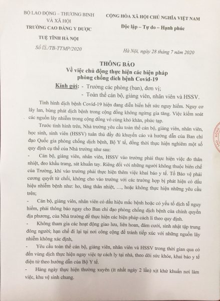 Chào mừng bạn đến với Cổng thông tin điện tử chính thức của Trường Cao đẳng Y Dược Tuệ Tĩnh Hà Nội ! Với vai trò như một trang tin nội bộ để phản ánh những thông tin, sự kiện nổi bật diễn ra trong hoạt động thường nhật của Trường, nên nhiều nội dung, hình ảnh, đề mục chưa đáp ứng được sự kỳ vọng của Quý độc giả, Quý Thầy cô và các bạn HSSV. Đồng thời, hiện tại Trang tin đang gặp phải một số vấn đề kỹ thuật, nên một số chuyên mục trên Trang bị lỗi và mất dữ liệu cập nhật. Nhà trường rất mong nhận được sự cảm thông, chia sẻ từ Quý độc giả, Quý Thầy cô, các bạn HSSV và sẽ cố gắng khắc phục tình trạng này trong thời gian sớm nhất. Trường Cao đẳng Y Dược Tuệ Tĩnh Hà Nội – Khẳng định sự khác biệt về chất lượng đào tạo của một trường chuyên ngành.